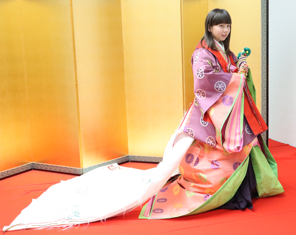 西条藩松平家の雛飾りは、西条藩9代藩主松平頼学のもとに京都の公家一条家から輿入れした通子(ゆきこ)が持参したもの。通子の雛人形は、公家の装束を考証してつくった有職雛(ゆうそくびな)で、公家出身の通子にふさわしいものといえます。