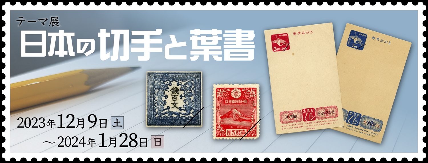 当館がこれまでに収集してきた切手や葉書の中から、1840年にイギリスで発行された世界初の切手である「ペニー・ブラック」と「ペンス・ブルー」、明治4(1871)年に発行された日本初の切手である「竜文切手」や翌年に発行された「竜銭切手」のほか、お正月にあわせて昭和10(1935)年に発行された日本初の年賀切手「富士」(渡辺崋山)や昭和24(1949)年に発行された日本初のお年玉付き年賀葉書など、多種多様な切手と葉書の世界を紹介します。