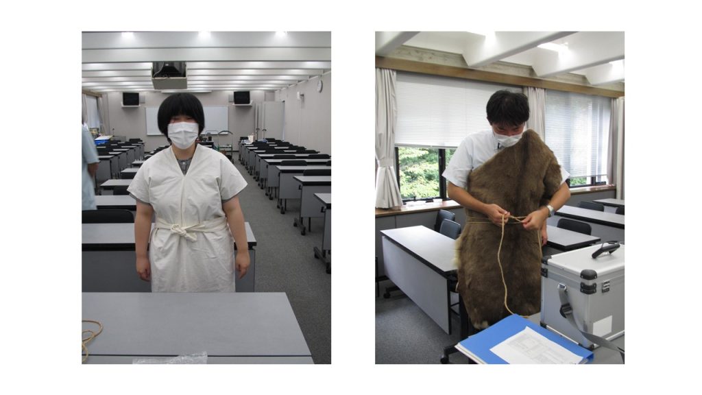 最終日の28日、会場に行ってみると実習生が今何をすべきか考えながら行動していました。子どもの視線にあわせてしゃがみながら、「上手にできてるね」、「何年生?」、「どこから来てくれたの?」、「難しいところある?」と問いかけながら手伝いができていました。時間があるときは容器を洗ったり、アルコールで机や椅子を拭いたり、よく気がつくようになっていました。