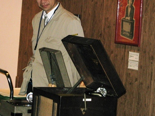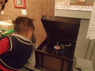 ターンテーブルが廻り、SPレコードの音楽が流れだすと、「電気を使っていないのに、こんなに大きくてきれいな音が出るなんて」とびっくりしていました。