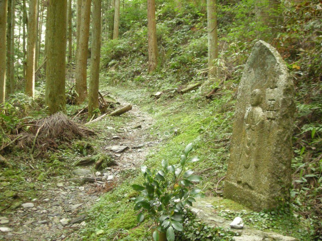 横峰寺道は古道の保存状態も良く、横峰寺までの距離を示す丁石も残されており(写真①)、平成28・29年(2016・17)に横峰寺道の一部(二十丁の位置にある湯浪休憩所付近から五丁石付近までの区間、翌年には五丁石付近から山門までの区間の総延長約2.1㎞)と横峰寺境内が国史跡「伊予遍路道」に指定されました。