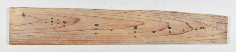 木造和船を建造する際の設計図に当たる船図面には、紙に描いた紙図と板に描いた板図とがあるが、今回は宇和島市津島町で木造和船を建造していた船大工から寄贈を受けた板図を紹介する。